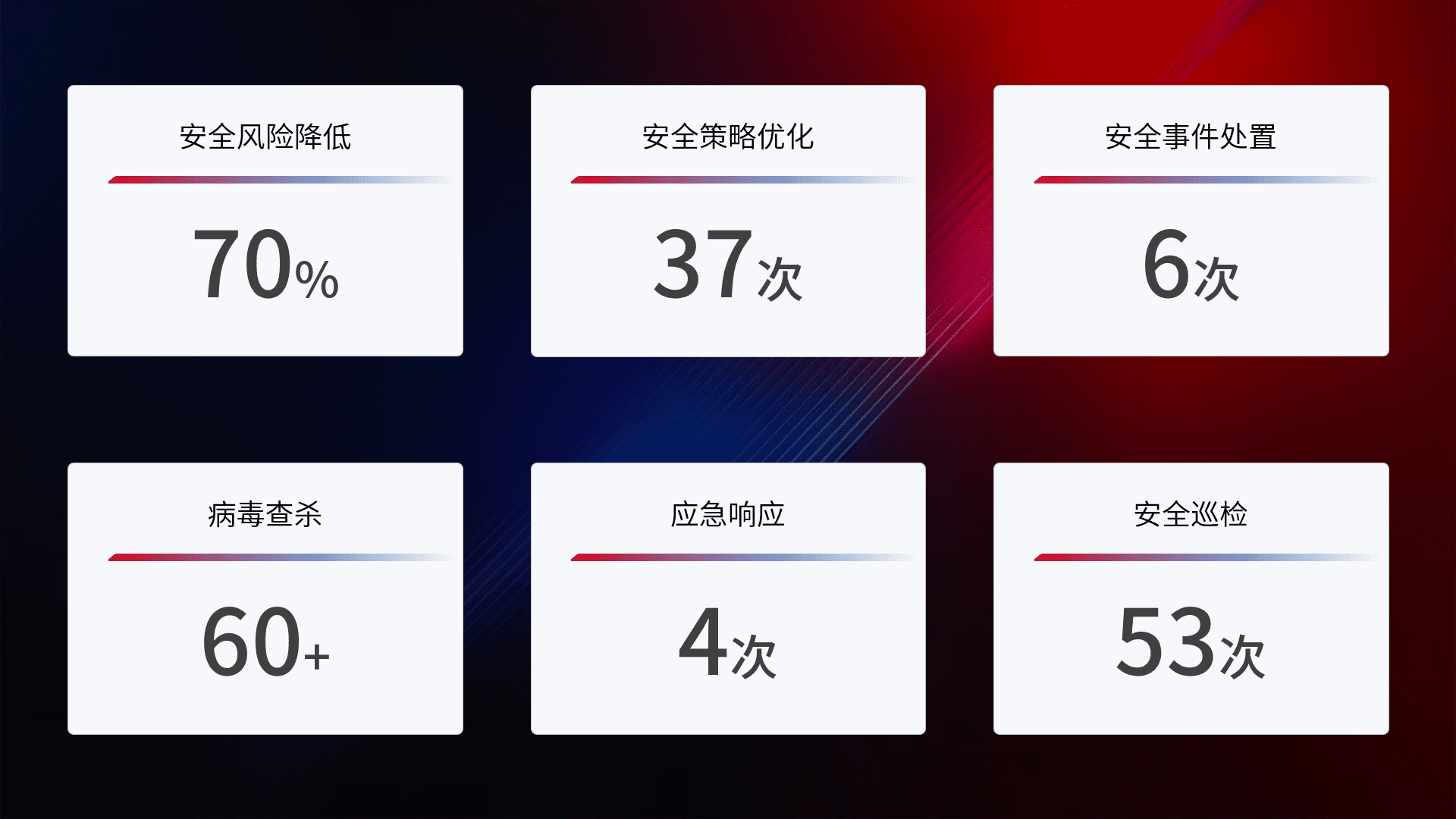 提供全面的安全事件报告体系,,,,包括处置报告、、、周报、、、、季度和年度总结,,,,结合持续监控,,,帮助客户深入了解网络安全状况。。